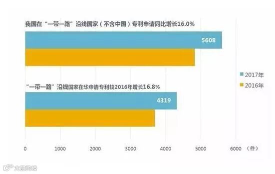 据专利统计简报信息显示,“一带一路”国家来华专利申请量从2013年的 2597件增加到 2017年的 4317件 ,年均增长 13.5%。