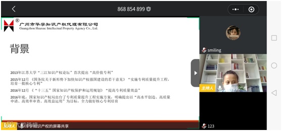 2020年06月12日,由广州市天河区市场监督管理局(知识产权局)主办、广州市天河区知识产权联合会承办、广州市华学知识产权代理有限公司协办的“企业高价值专利布局及知识产权管理规范”专题培训班顺利举办。此次培训采取线上直播方式,参加本次培训班的学员超过60人次。培训班旨在提升企业管理人员、知识产权工作人员对专利挖掘、专利布局以及企业知识产权管理风险管控等能力,达到了预期目的,取得了良好效果,得到了参会学员的一致认可和好评。