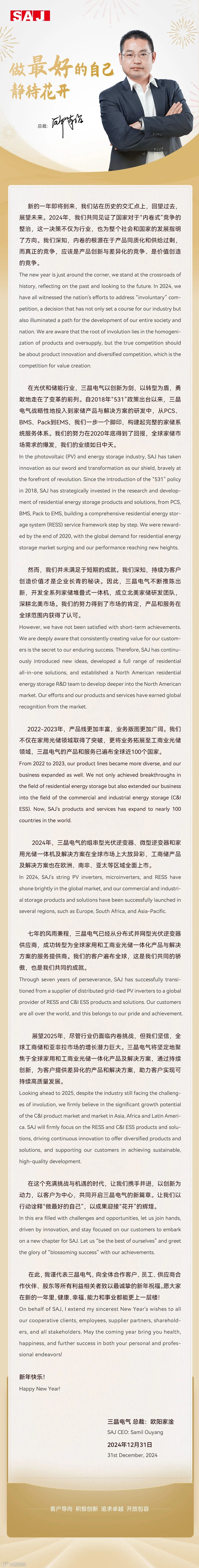 导读:三晶电气总裁欧阳家淦新年贺词:做最好的自己,静待花开