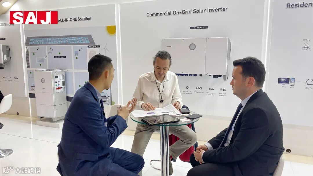 三晶在此次展会展示了工商业并网光伏逆变器C6,C6系列采用了新的工业美学设计和最新研发技术,提供最大12路MPPT,30A最大PV电流,可完全适配目前市场的大功率组件。并且该产品获得了德国2022年Red Dot和iF双料设计大奖,具有转化效率高、安全性高、性能可靠等特点,在现场备受关注。