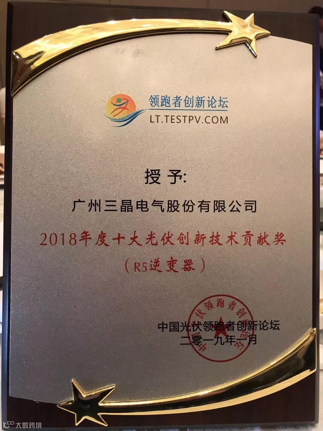 在会议报告部分结束之后,光伏领跑者创新论坛对2018年度光伏领跑者创新论坛杰出贡献单位、个人颁证。三晶电气凭借2018年的技术进步和产品优势,一举荣获“2018年度十大光伏创新技术贡献奖(R5逆变器)”。三晶电气的产品再获殊荣,充分说明了R5家庭光伏专用逆变器的的技术领先地位,赢得了媒体和协会的一致认可。