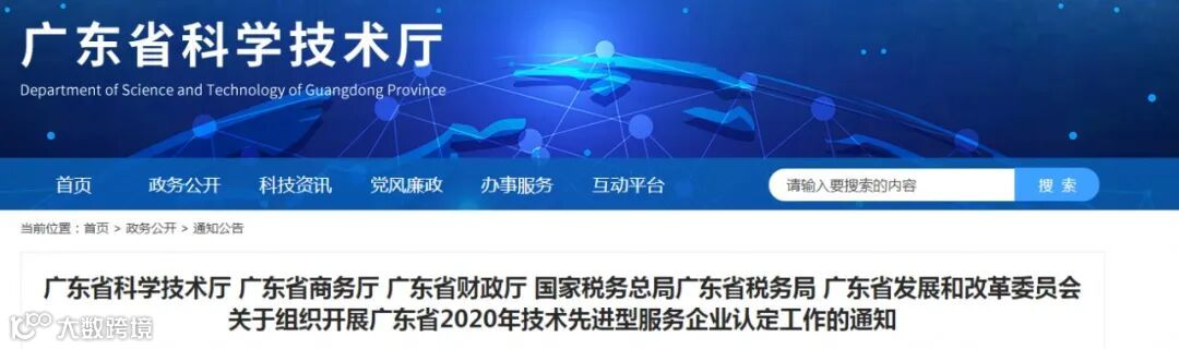 为做好我省2020年技术先进型服务企业认定工作,根据《广东省技术先进型服务企业认定管理办法》(粤科规范字〔2018〕3号)的有关规定,加强引进和发展高技术服务外包产业,结合我省技术先进型服务企业工作实际,现将有关事项通知如下:
