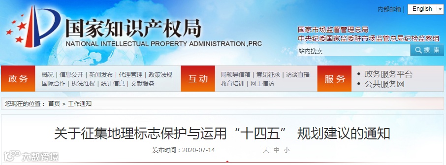关于征集地理标志保护与运用“十四五” 规划建议的通知