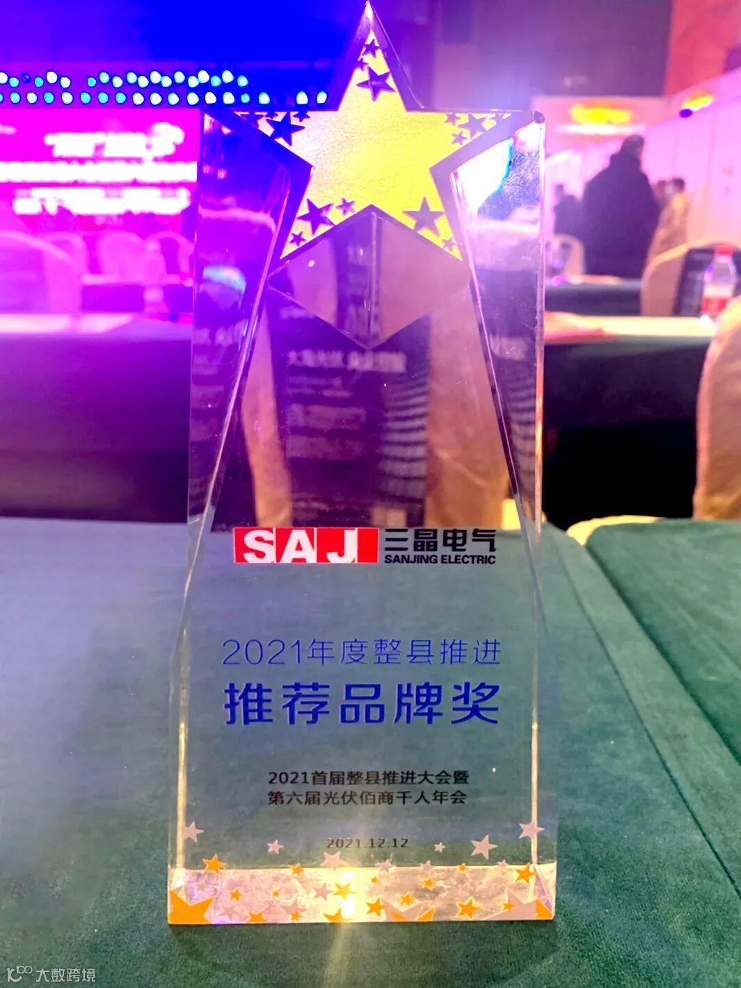 “分布式光伏整县推进政策”是助力国家实现碳达峰、碳中和愿景的重要举措,对所有参与其中的光伏人来说,也是一场需要攻坚克难的硬仗。12月12日,由欧乐文化主办的首届整县推进大会暨第六届光伏佰商年会在山东省德州市太阳谷微排国际酒店成功举办。在会议上,大会为行业内的优秀企业颁发2021 年整县推进“推荐品牌奖”,三晶电气凭借在整县推进项目上的突出贡献以及自身产品和解决方案的硬实力,荣膺“2021 年整县推进推荐品牌奖”。