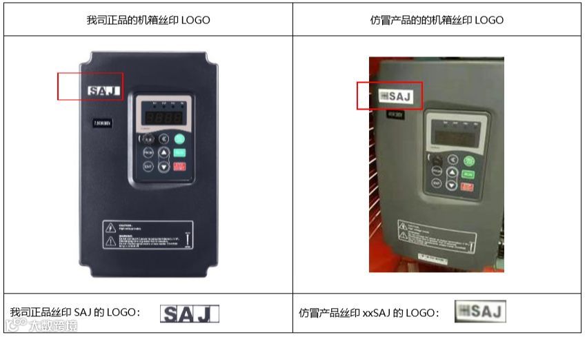 1、未经本公司授权,任何单位和个人均不得擅自制作、或在商品上使用“SAJ”、“三晶电气”商标字样和商标;否则,违反了中国有关注册商标保护的相关法律、法规的规定,本公司有权采取措施追究侵权人的相关法律责任。