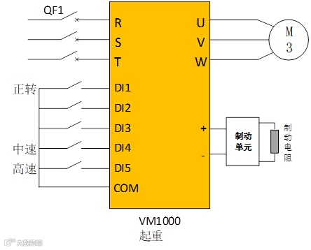 ◀ 起重机构加装制动单元及制动电阻,在加减速时间较短情况下,也能够平稳运行。