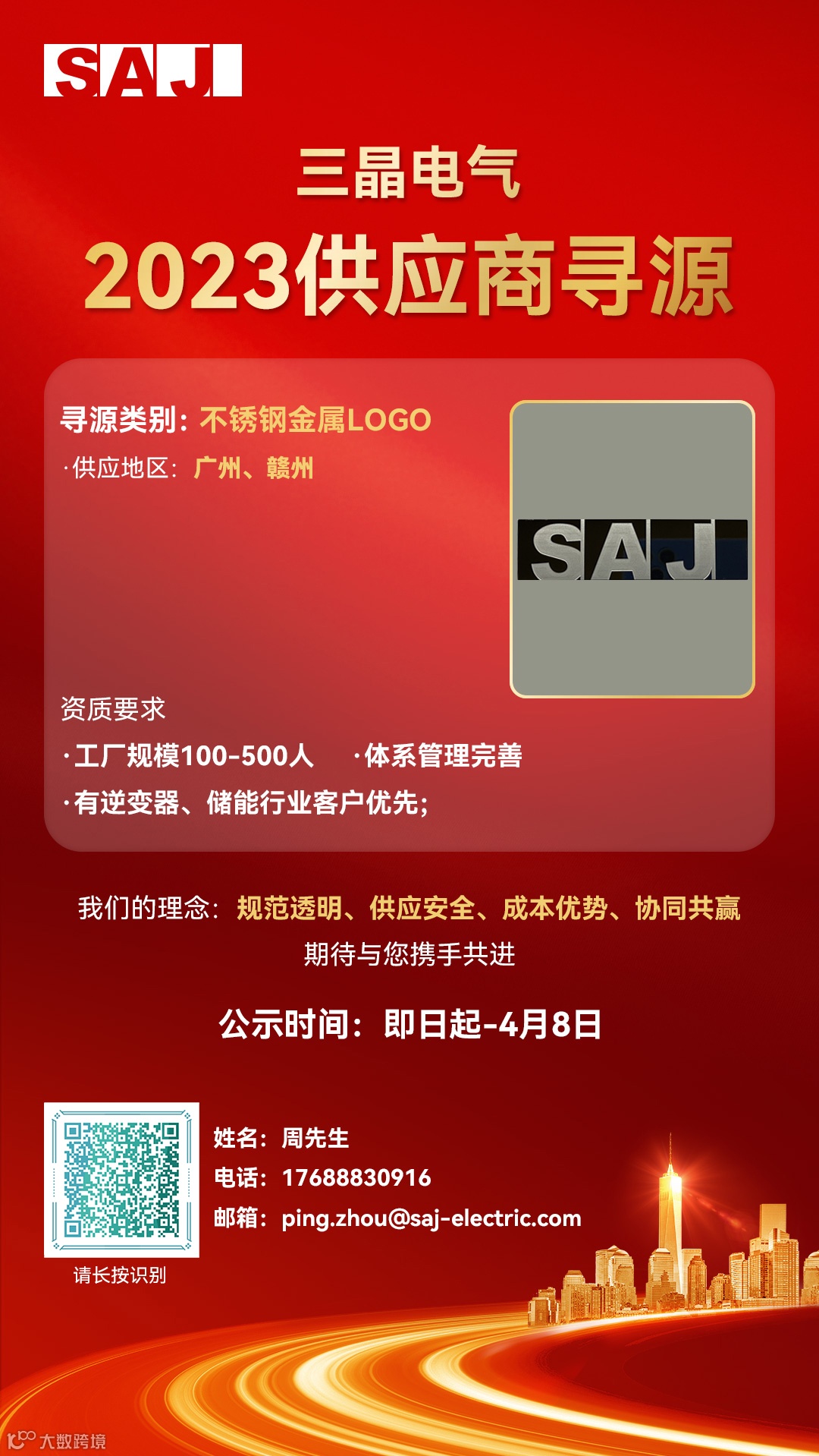 三晶拟对2023年“不锈钢金属LOGO”项目公开招募供应商,欢迎所有满足资质要求的供应商积极参与。