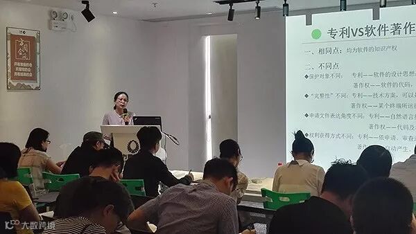 下午,我司资深代理人林梅繁对软件类专利的申请实务进行讲解,指导企业相关人员区分专利、软件著作权之间的关系,以及选择适当的软件类发明创造的保护方式,如申请专利、进行软件著作权登记或采取商业秘密保护形式等,总结了软件类专利的客体保护主题;然后,以京东无人智能配送机器人作为案例进行演示分析,围绕IPC分类号中的G06的主题,开展配送方法、装置、系统等相关方向的专利挖掘与布局,形成了针对软件类专利挖掘与布局严密保护的专利组合或保护形式,引起学员的共鸣与思考。交流环节,学员与林老师交流热烈。