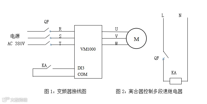 VM1000系列变频器控制电机最高运行频率为50Hz,离合器加载过程中有大电流冲击使用变频器多端速方式完美的解决了大电流冲击问题。