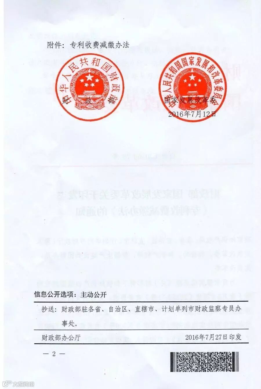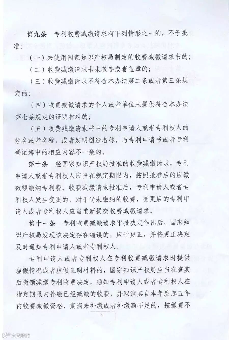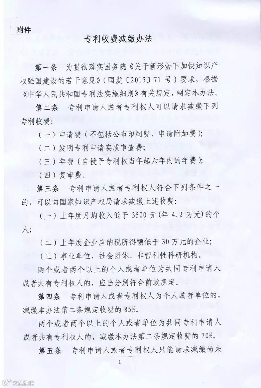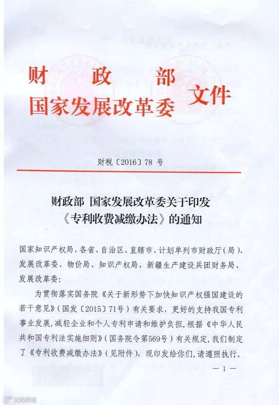 国家〈专利收费减缴办法〉文件通知(2016年9月1日起实施)