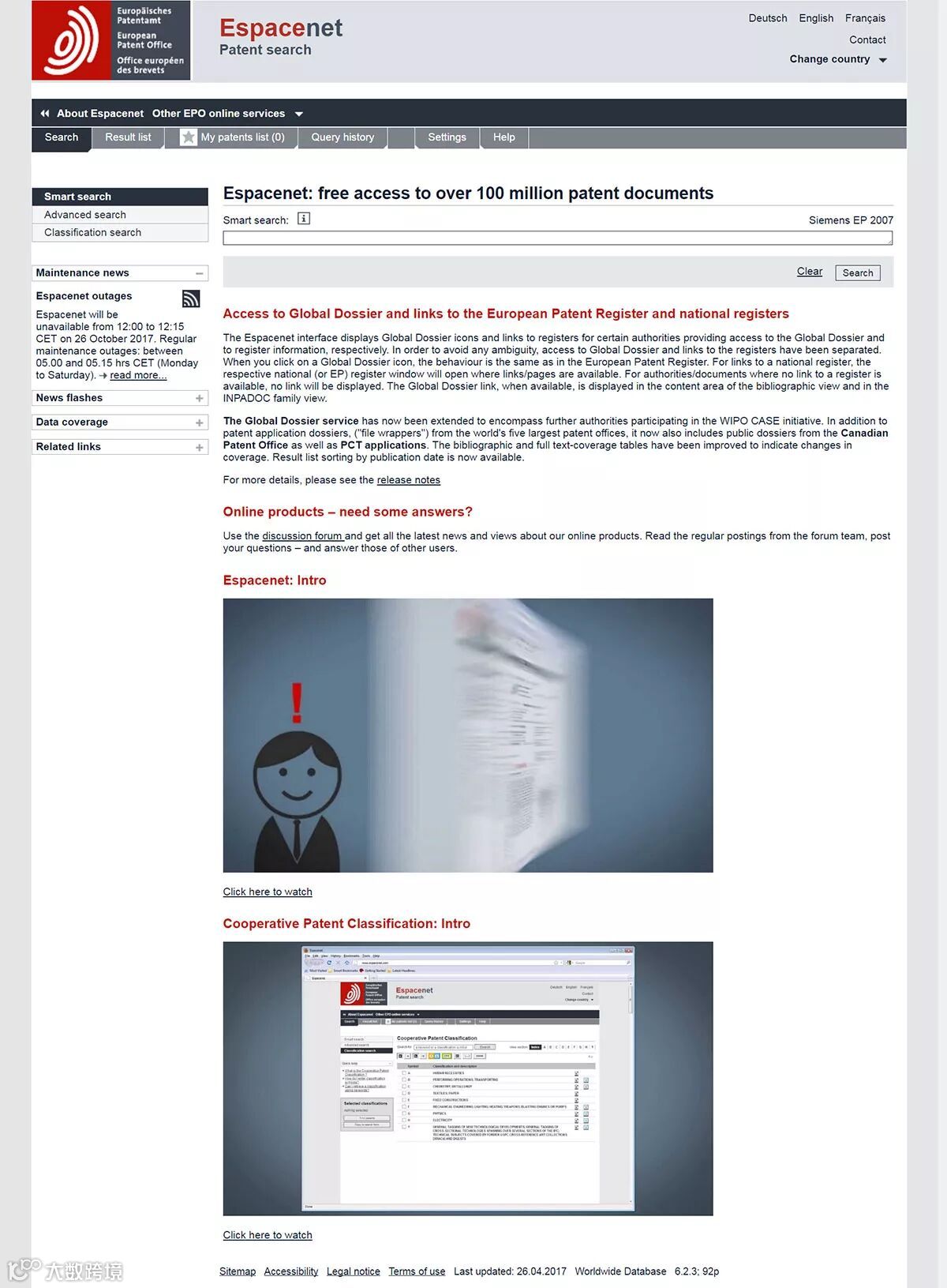 【欧洲专利局的著名免费数据库】