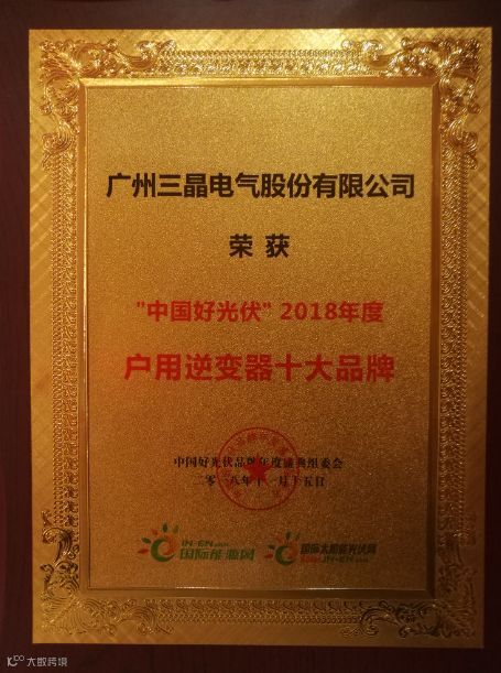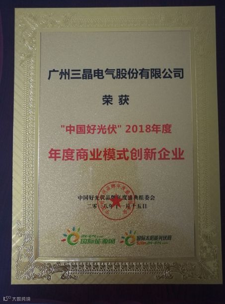 三晶电气凭借2018年的优秀市场表现,荣获“中国好光伏”2018年度户用逆变器十大品牌和年度商业模式创新企业两项大奖。