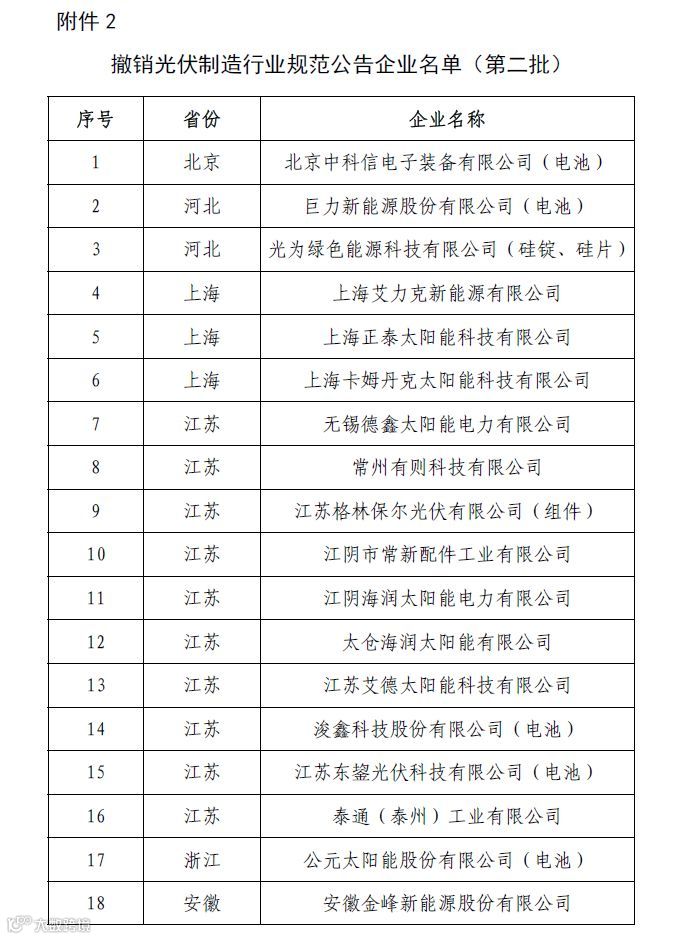 2.撤销光伏制造行业规范公告企业名称(第二批)