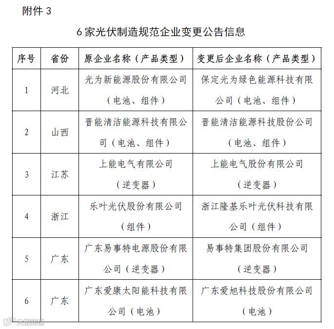 3.6家光伏制造规范企业变更公告信息