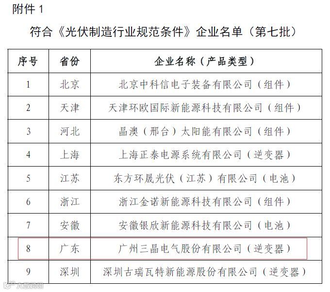 1.符合《光伏制造行业规范条件》企业名单(第七批)