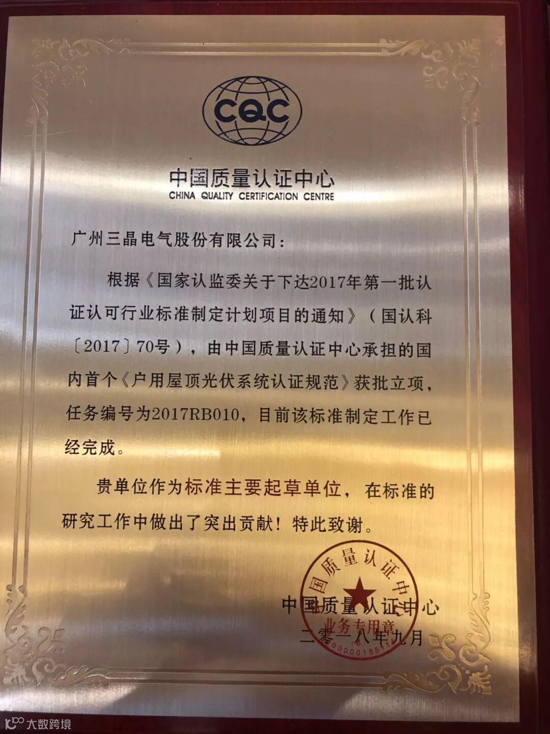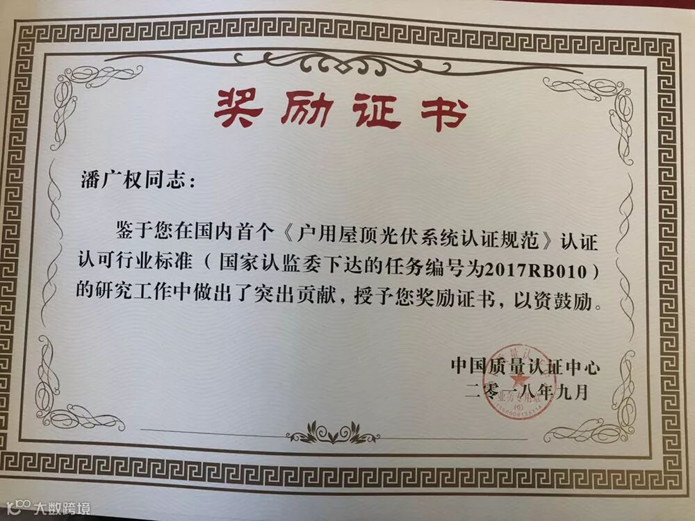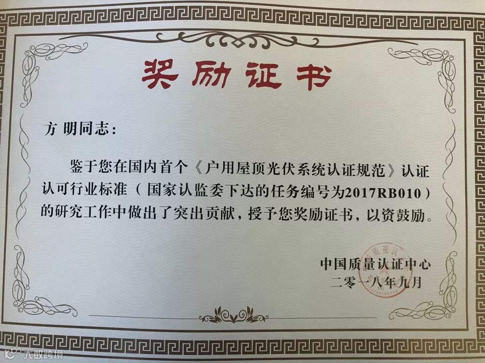 会议期间,邢合萍为包括三晶电气在内的《户用屋顶光伏系统认证规范》参编单位进行了授牌,中国质量认证中心质量技术部副部长刘文文为方明、潘广权、何松、石磊等参编人员颁发奖励证书。会上,全国太阳能光伏能源系统标准化技术委员会秘书长肖志斌对IEC光伏标准及户用光伏相关标准进行了介绍。