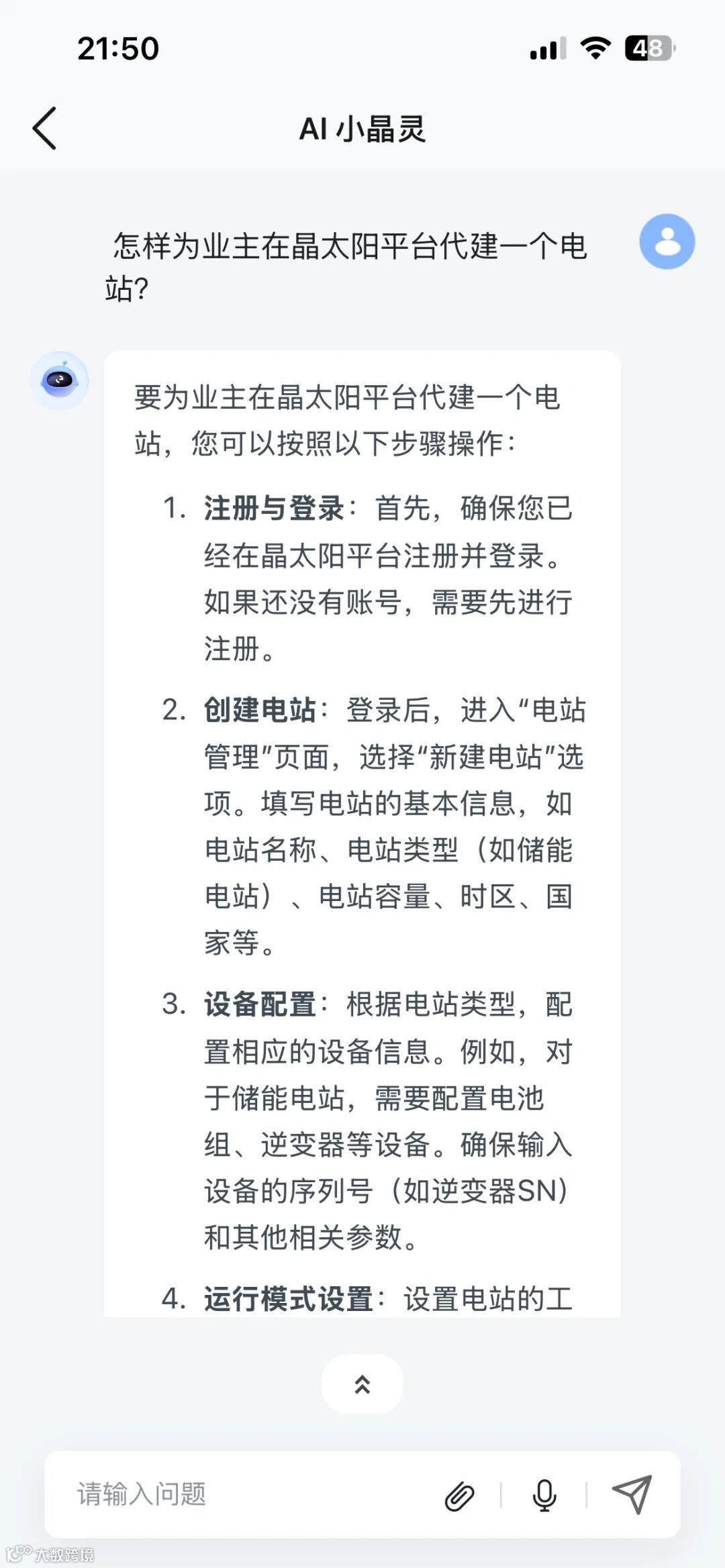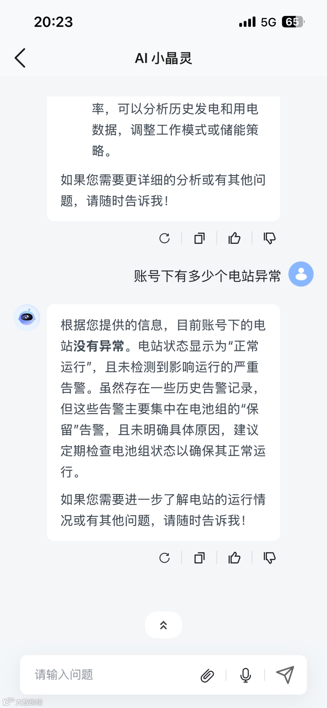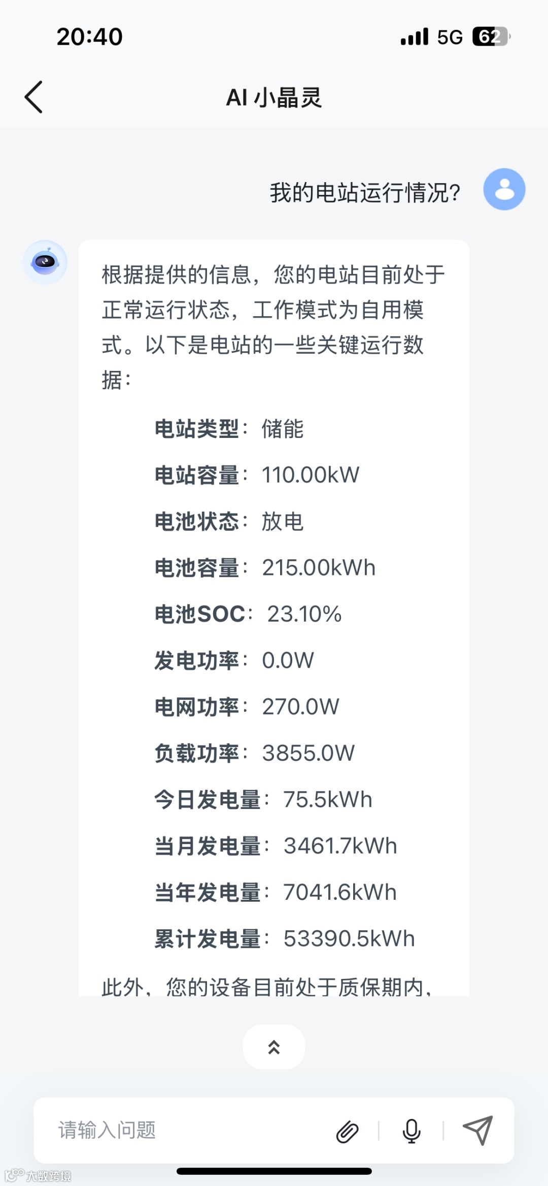 “小晶,电站今天发电怎么样?” “这台逆变器质保到哪天?”——无需复杂操作,AI小晶灵用“聊天式交互”帮您一键搞定!