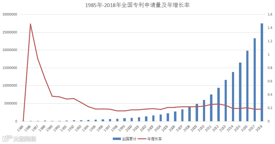 图全国申请总量和增长变化(数据来源:国家知识产权局)