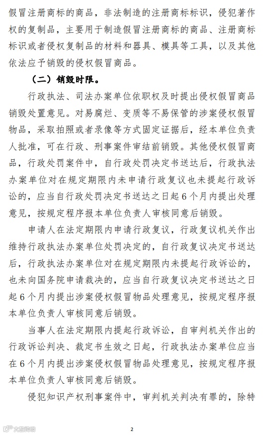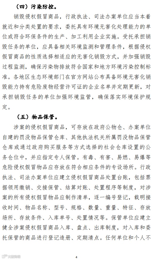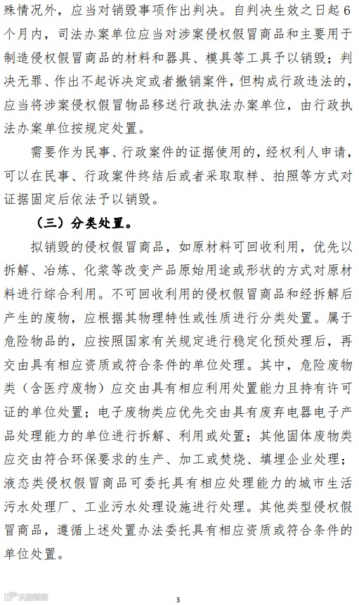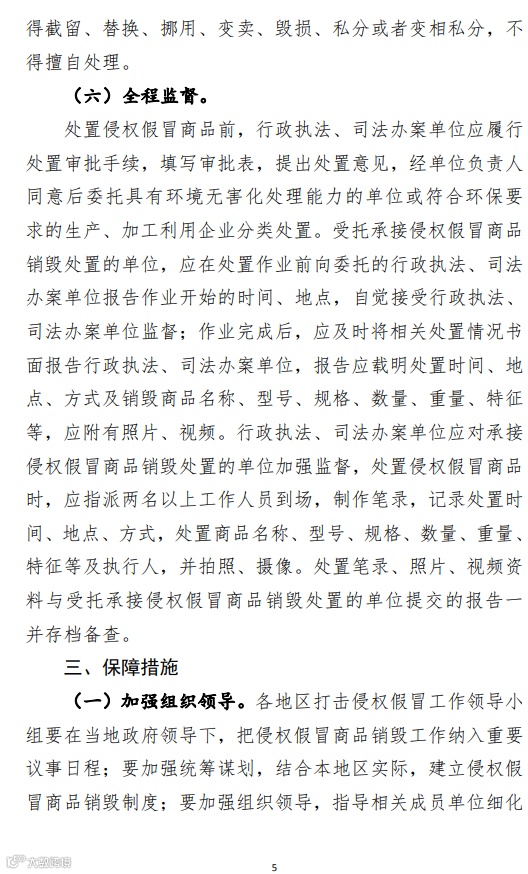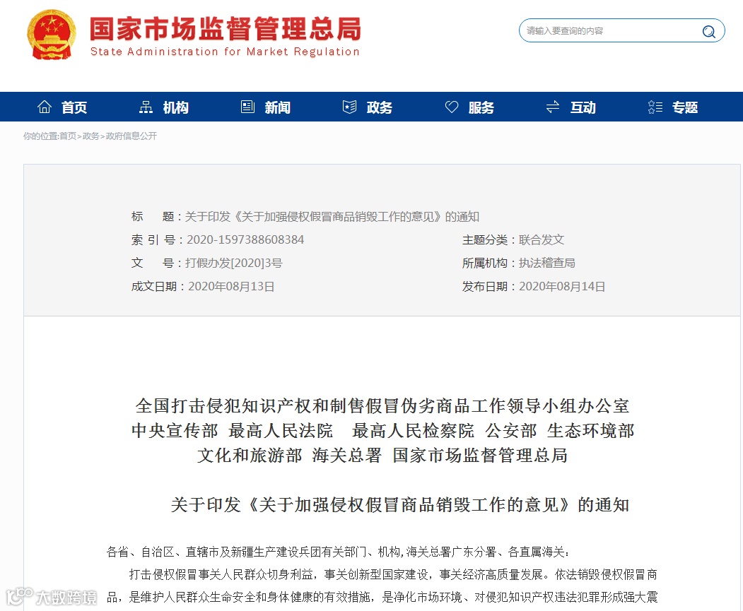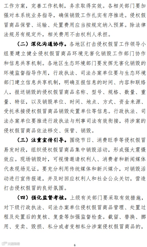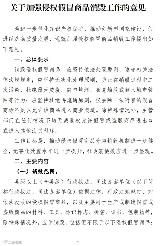 关于印发《关于加强侵权假冒商品销毁工作的意见》的通知