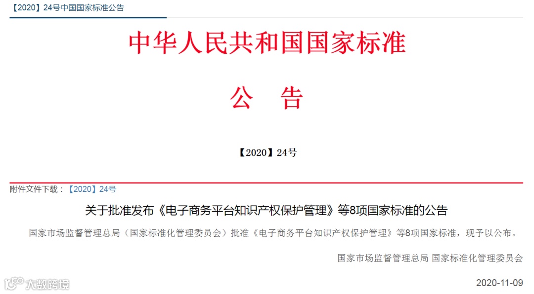 今年9月份,国家标准《电子商务平台知识产权保护管理》就已公开征求意见 ,此前已进行了关注,详见推文“电商平台的知识产权保护国家标准(草案)了解一下!”。