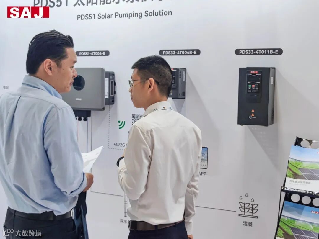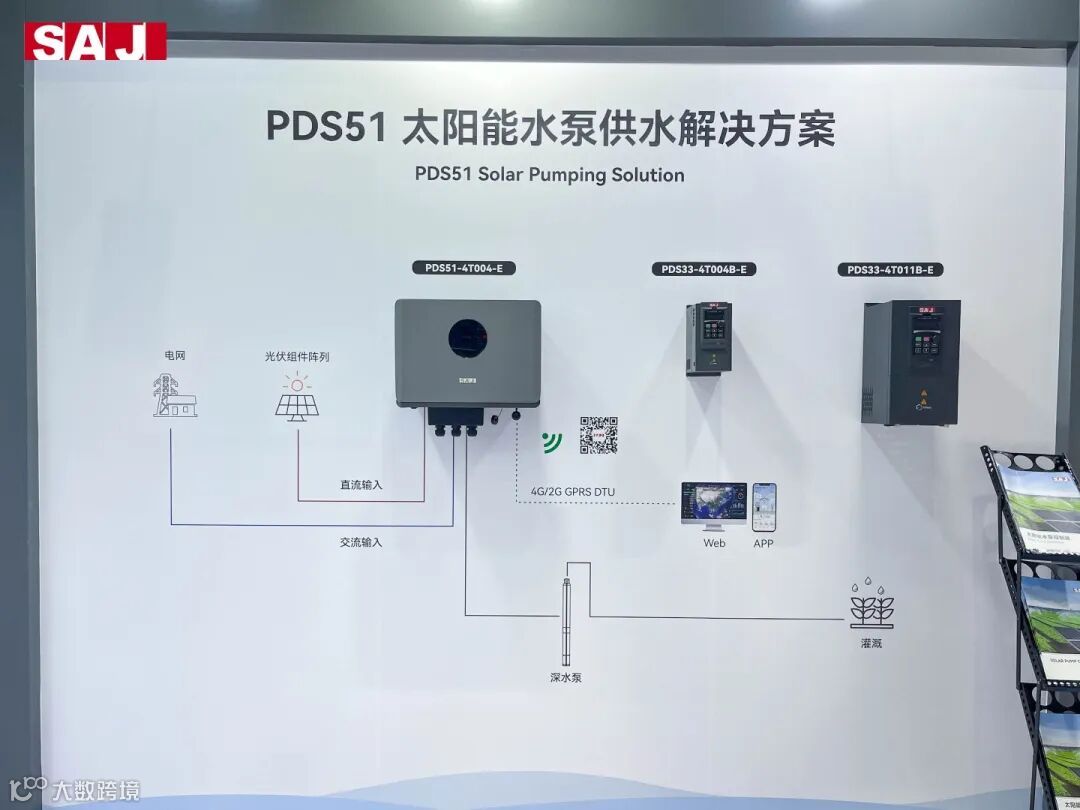三晶电气光伏扬水解决方案,在光伏灌溉与水利项目工程中展现卓越性能,将传统的柴油发电、交流供电方式革新为光伏供电的绿色能源新路径。这不仅缓解了偏远地区的用水难题,更是迈向碳中和、碳达峰目标的坚实步伐。而此次展出的PDS51太阳能水泵控制器,以其独特的悬浮式显示设计,将时尚与美观融为一体,令人耳目一新。该控制器支持2.2-11kW的广泛功率范围,满足不同应用场景的需求。同时,其高达IP65的防护等级,确保在各种恶劣环境下都能稳定运行,展现出强大的适应能力。此外,该控制器还支持多台联机使用,实现大规模水利项目的集中控制与管理。同时,可视化监控平台及OTA功能的加入,使得用户能够随时了解设备运行状态,进行远程故障诊断与升级,大大提高了维护与管理的效率。