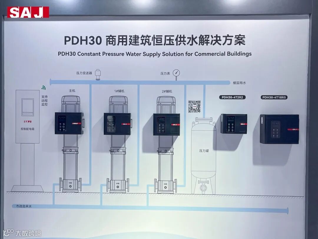 在此次展会中,三晶电气再次以其卓越的技术实力与创新精神,在水务变频解决方案领域崭露头角。其中,尤为引人注目的是PDH30商用建筑恒压供水解决方案、PDG10灌溉系统解决方案以及家用智能水泵变频解决方案的展示。尤其是PDH30商用建筑恒压供水解决方案,凭借卓越的技术优势和实际应用效果,成为了众多参观者竞相关注的焦点。该方案不仅具备双路通讯功能,确保了系统扩展的灵活性与便捷性,还可实现多台联机,有效降低了设备的能耗问题,为商业建筑提供了高效、节能的供水解决方案。在安装方面,PDH30方案采用了贴合曲线背负安装设计,无需额外控制柜,可直接安装在水泵电机接线盒上,既实用又美观,充分展现了人性化的设计理念,大大提升了用户体验。