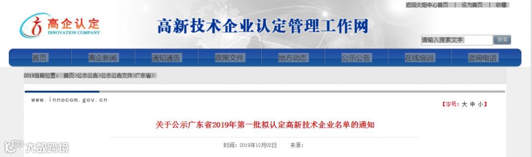 关于公示广东省2019年第一批拟认定高新技术企业名单的通知