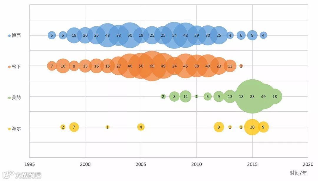 图3 喷嘴式洗碗机重点专利权人专利申请趋势图