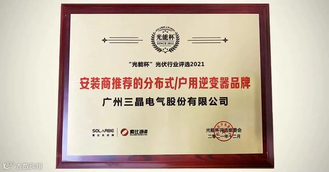 1月6日“分布式光伏整县推进合伙人大会暨 2021 年“光能杯”颁奖典礼”在苏州隆重召开。光能杯始于2012年, 10余年来,“光能杯”记录中国光伏行业发展历程,细数光伏行业最高成就,见证标杆的力量,是光伏行业最受瞩目的行业评选活动之一。三晶电气凭借优异的品牌实力和自主创新技术荣膺“安装商推荐的分布式/户用逆变器品牌”。