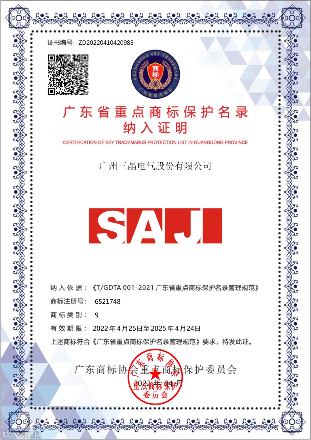 近日,广东省商标协会公布了《2021年度广东省重点商标保护名录纳入名单》,三晶的商标 “SAJ”被纳入其中,品牌价值与企业综合实力再次获得权威认可。