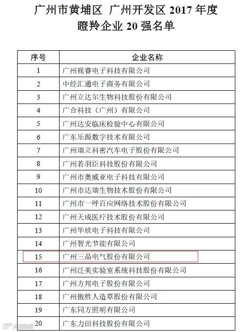 日前,黄埔区政府 广州开发区管委会在广州开发区科技创新大会上对包括三晶在内的广州开发区“2017年瞪羚企业20强”企业予以通报表彰,以嘉奖通过科技创新调整产业结构、转变经济增长方式取得明显效果、推动区内战略起到积极示范带动作用的企业,促进瞪羚企业的持续快速成长。