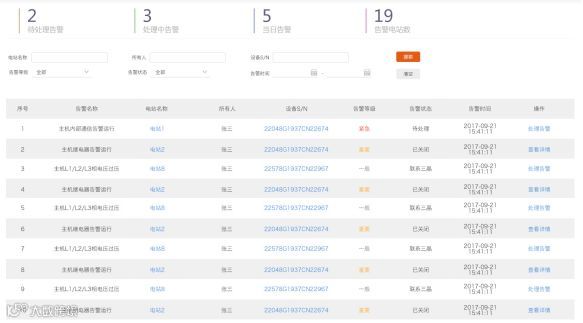 告警分不同故障等级:紧急、重要、一般,有原因分析、解决措施,平台提供全生命周期跟踪记录。