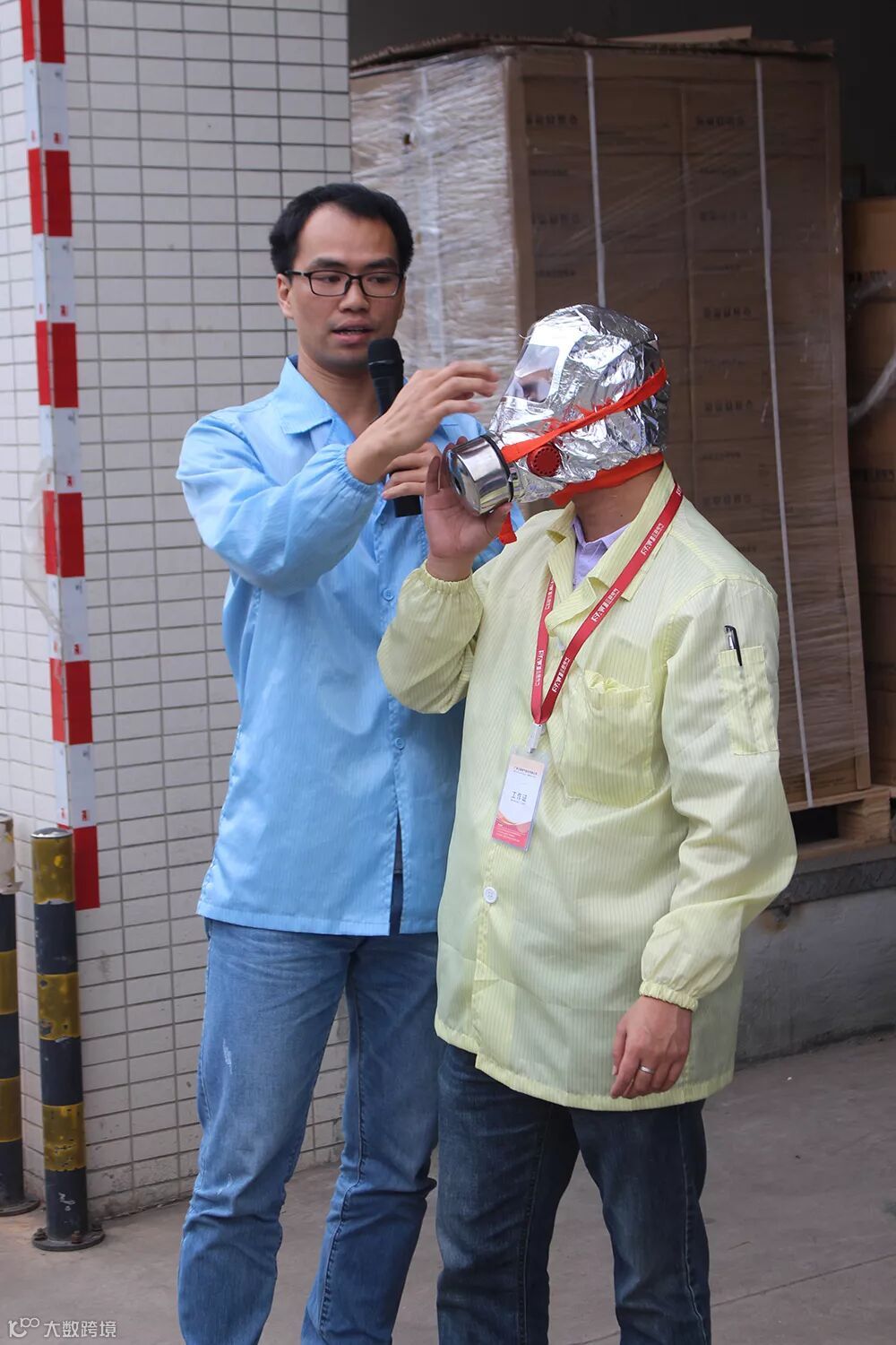 接着工艺部隆主管为大家详细讲解了灭火器和防毒面具的使用方法;保安队江班长为大家示范了消防水带的使用方法。