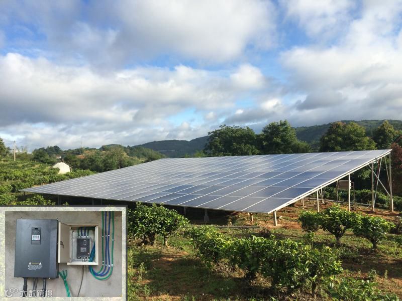 (2)太阳能水泵控制器是将太阳能电池阵列输出的直流电去驱动水泵,并根据光照强度自动调节水泵的转速,内置防抽干保护、电机过载等保护功能;