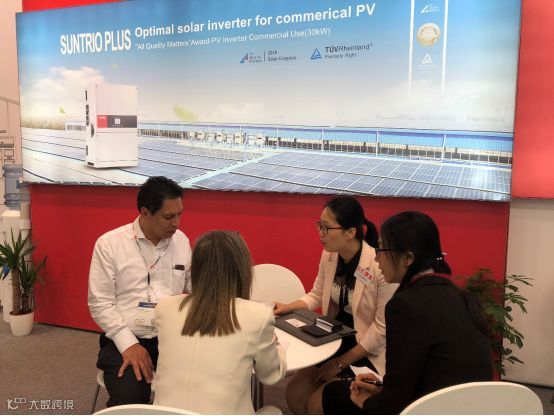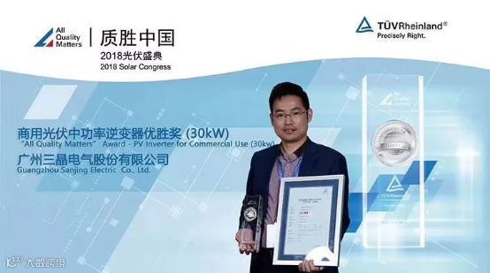 产品质量是企业影响力传播以及市场拓展中至关重的要因素。在日趋激烈的市场竞争中,三晶电气不忘初心,一直坚持以技术创新为核心,潜心打造的高品质光伏逆变器产品,其中Suntrio Plus 33kW商用光伏逆变器在今年3月底由德国TÜV莱茵主办的2018“质胜中国”光伏盛典中获得了“质胜中国商用光伏中功率逆变器优胜奖”的殊荣。获此殊荣正是对三晶产品质量最好的认可,因此吸引了持续不断的外国访客在展位咨询交流,现场工作团队专业、热情、全面的解读也得到了他们的高度好评。