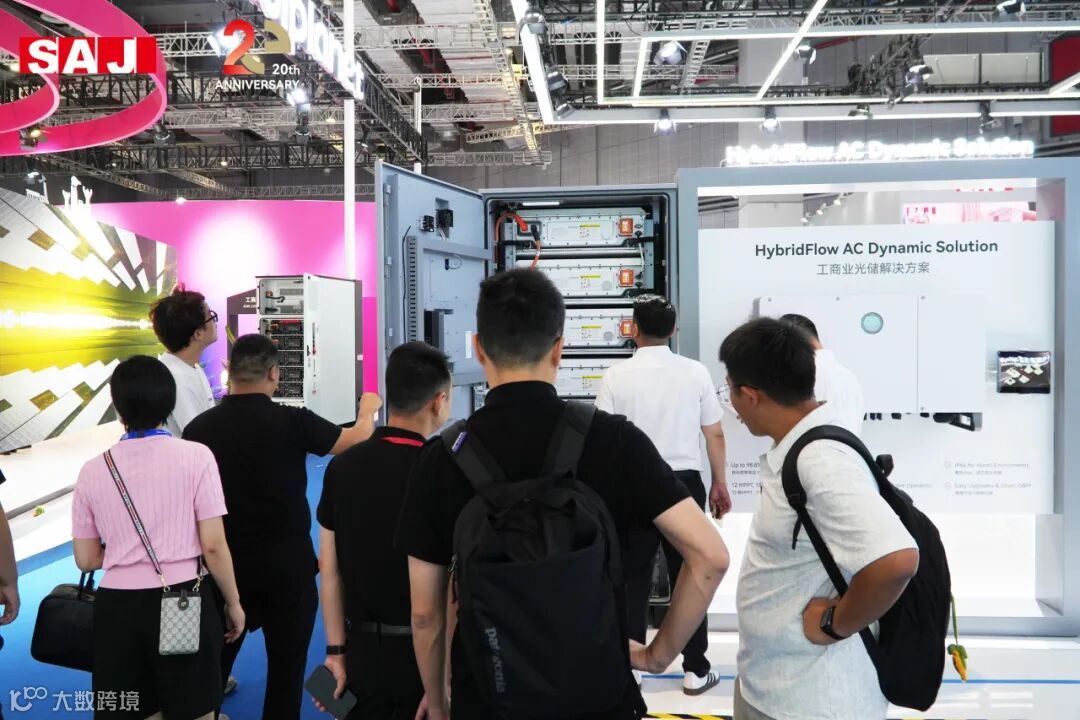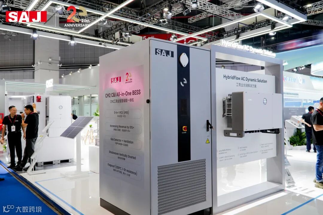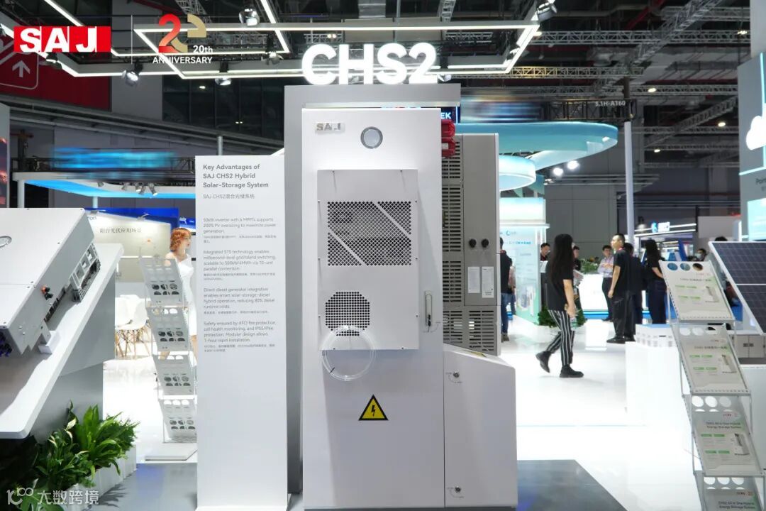 CHS2 系列工商业储能系统凭借卓越性能,吸引众多现场观众驻足观摩,成为三晶电气展台备受瞩目的焦点之一。该系统是混合光储领域的杰出代表,在光伏与储能的深度融合方面展现出卓越实力。CHS2系统采用22.5A大电流设计,完美适配高功率光伏组件,搭载6路MPPT,支持高达200%的光伏超配,实现太阳能资源的高效转化与利用;智能管理系统支持微电网构建,具备多元应用模式与智能负载管理功能,为用户提供精细化、灵活化的能源管理解决方案。在安全防护层面,电池 IP55 与逆变器 IP66 的高防护等级,搭配智能温控系统,确保设备在复杂户外环境下稳定运行。此外,系统采用模块化即插即用设计,大幅简化安装调试流程,显著提升部署效率。CHS2 系列工商业储能系统以全方位的技术优势,在混合光储领域树立了新的标杆。为多场景能源应用提供可靠保障,有力推动工商业储能领域高质量发展进程。