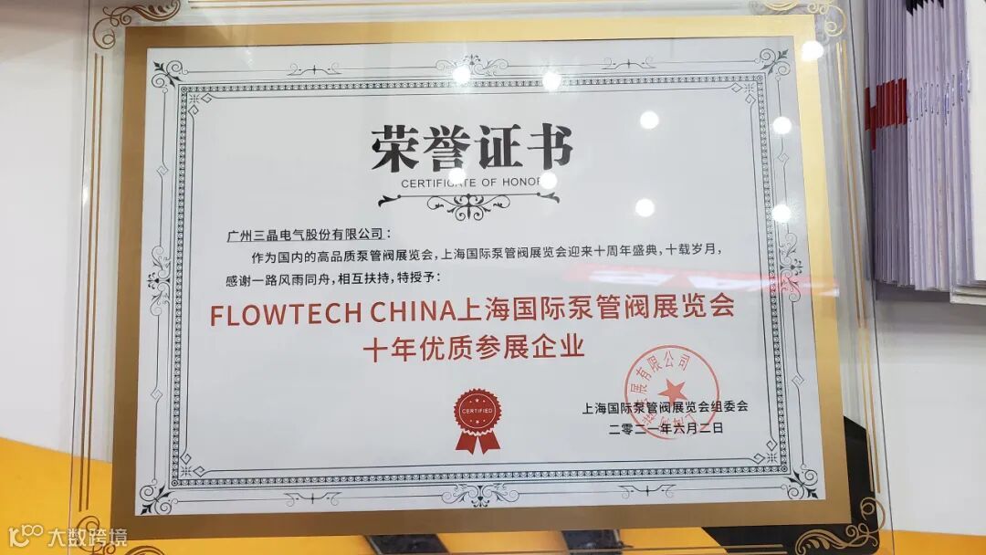 三晶电气十余年来始终坚持深耕电机驱动控制领域,在智能水泵变频器产品上更是投注诸多心血。国内外客户对该系列产品的全面功能、强大性能和稳定质量均赞不绝口。本次展会,三晶电气荣获“十年优质参展企业”奖项,相信在将来,我们一定会拿出更加优秀的产品回馈市场,与广大客户共同发展进步。