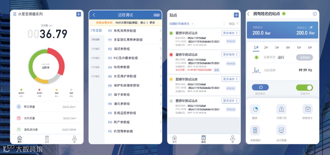 三晶电气自主开发的4G监控模块,配合“晶水星助手”微信小程序,可实现对变频器的远程手机端监控,不仅能够实时观察变频器的反馈压力、设置压力、运行频率、输出电流等指标,更能远程启停,故障复位,调节参数。让系统调试不再复杂。