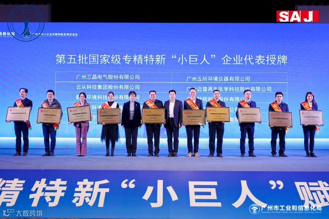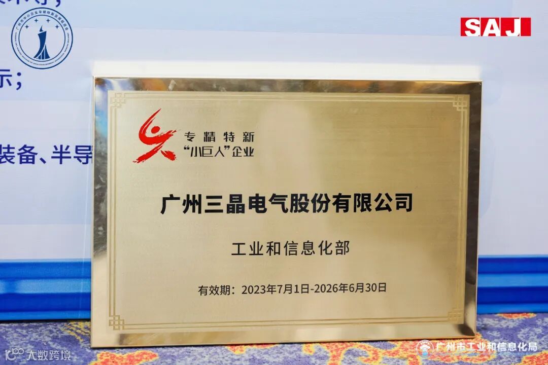 会上,广州三晶电气股份有限公司(下称三晶)作为第五批国家级专精特新“小巨人”企业代表,上台接受授牌。