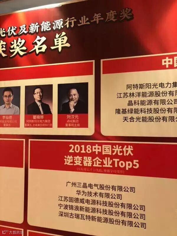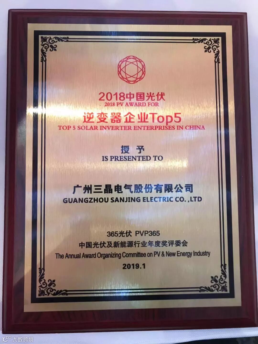 在大会同期举办的年度奖颁奖典礼上,三晶电气凭借在2018年的优异表现,荣获“2018中国逆变器企业Top5”大奖。三晶电气的健稳和成长,获得了媒体与市场的双重肯定,在新的一年,必将砥砺前行,为客户提供更加优质的产品和服务,再创辉煌。