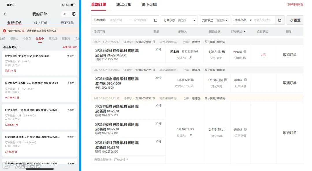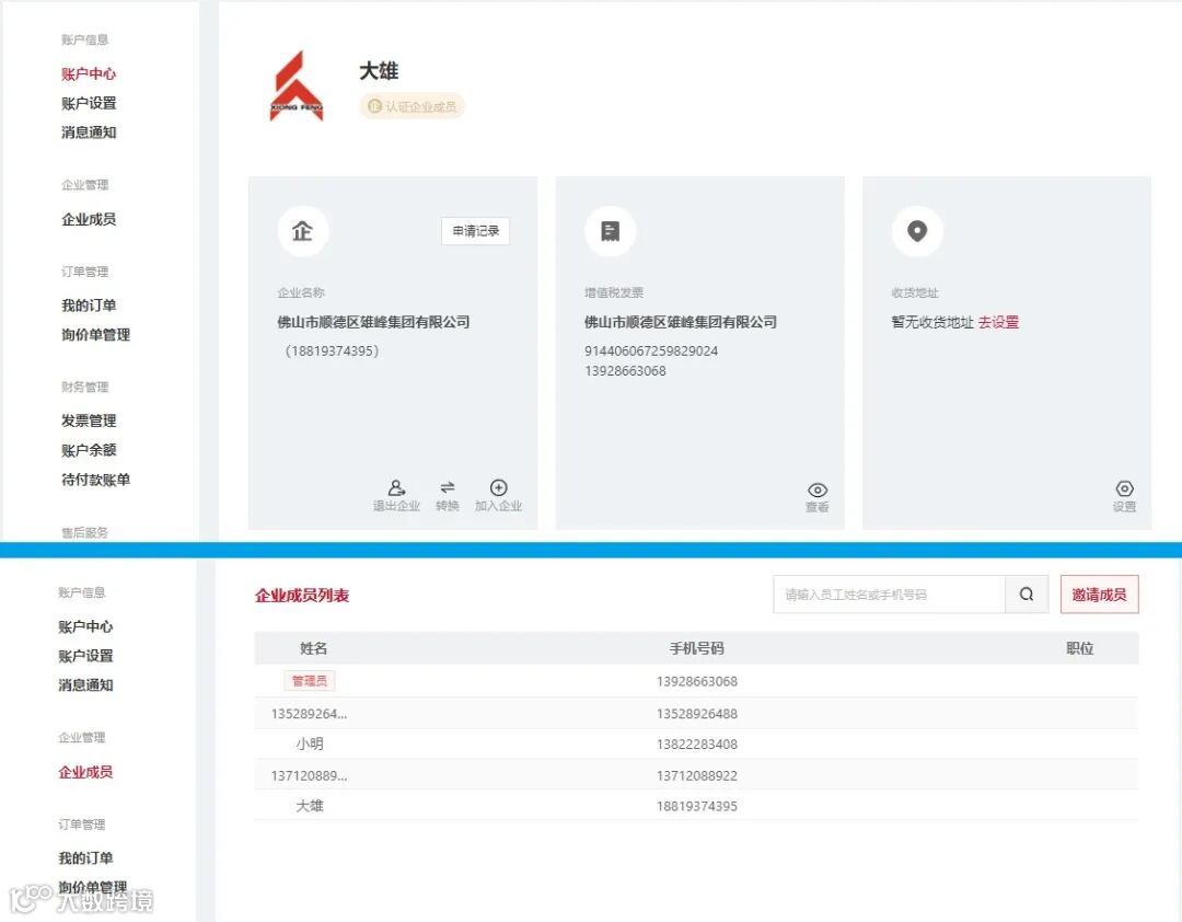 在即将上线的雄峰特钢网平台上,主账号、子账号管理系统,财账系统,清单系统三个核心功能板块的环环相扣,就能完美的解决上述的问题。