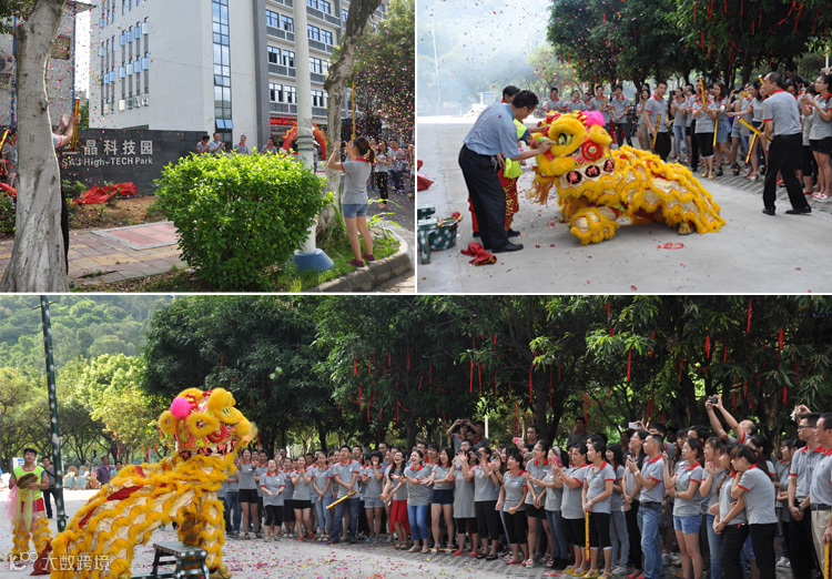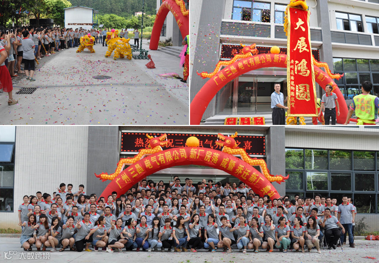 2014年9月1日,在这个夏花灿烂,阳光明媚的日子,三晶电气举行了隆重的乔迁典礼。随着鞭炮声,锣鼓声,公司高层举行揭幕仪式,标志着三晶电气正式乔迁至三晶科技园,公司的发展开启了新的篇章。这一天,三晶科技园大门前鼓声震天,人群涌动。洋溢着喜庆的红色充气横幅上立着金灿灿的大字:广州三晶电气有限公司新厂房落成暨乔迁新厂典礼!公司上下分外喜庆,条幅飘扬,还有隆重的舞狮表演,汇聚成一片欢乐的海洋。