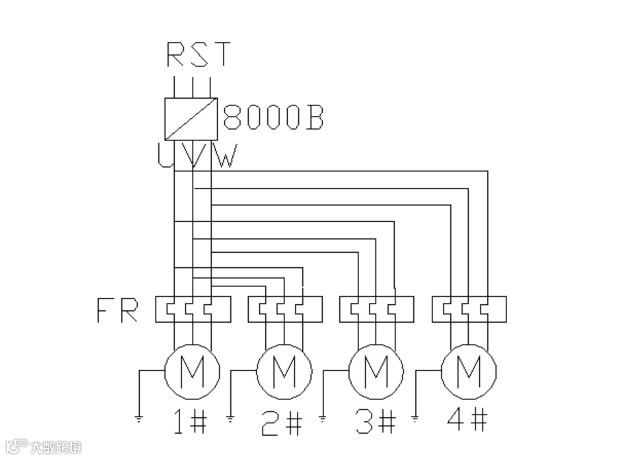 变频器为1拖4控制,且负载变化较大,选用大两档的功率,减少因堵转导致频繁的过流报警。由于变频器无法对多台小电机进行对应电流的检测,所以每台电机都匹配对应的热继电器做保护,防止过电流烧毁电机。