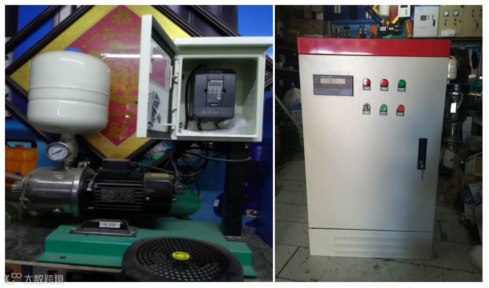 某小区根据实际用水需求,系统由一台0.75KW 8100变频器、一个工变频控制箱、一台0.75KW卧式多级泵和一个8L的压力罐、一个远传压力表组成一个工频-变频的恒压供水系统。当变频系统出现故障时,可以及时切换到工频继续供水作业。