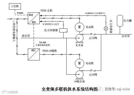 在变频供水系统中最常见的应用多式----全变频多联机,全变频则是每台水泵配置一台变频器,多联机则是将所有变频器通RS485的方式连接起来,通过通讯方式进行恒压、变频、轮换等功能的控制。今天,就跟大伙一起学习全变频系统中多联机是如何设置与使用的。