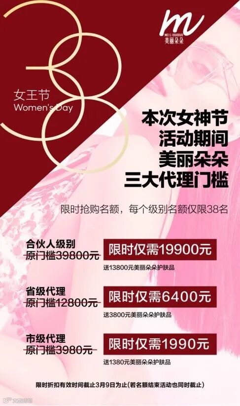 2、仅需6400元可升级省代,升级即赠送价值3800元的美丽朵朵指定产品;