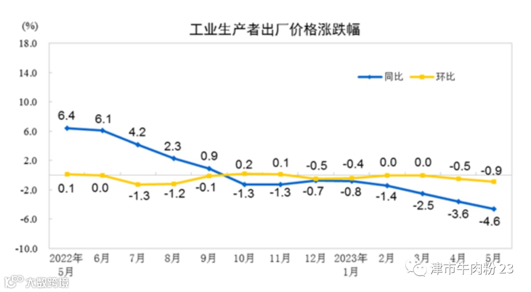 国家统计局 5月官方数据 - 国际大宗商品价格整体下行,国内外工业品市场需求总体偏弱,加之上年同期对比基数较高,我国 PPI 环比、同比均继续下降。