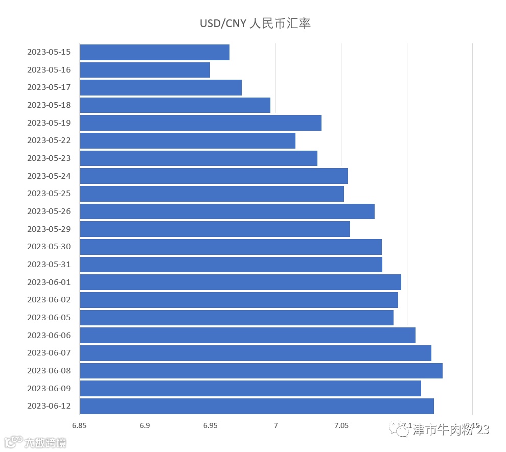 再结合此前公布的 4月居民消费数据环比下降,以及 5月进出口数据下降,人民币对美元汇率持续贬值以刺激出口,从数据的总体趋势来看,驱动经济三驾马车里头的 “消费” 不太行了(PPI 下滑会产生间接影响),而 “出口” 还在挣扎,降汇率的大招也发了、企业该降价也降了,期待全球经济复苏、对我国商品的需求再次爆发。
