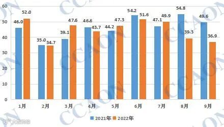 根据最新的海关统计数据,2022年9月份我国PVC地板出口量为36.90万吨,环比上月出口量39.29万吨下降了6.10%,同比去年出口量减少25.56%。2022年1-9月份我国PVC地板累计出口402.99万吨,与去年同期的416.61万吨相比,减少了3.27%。本月我国PVC地板环比、同比均有所下降,但相比上月降速有所放缓,近期国内部分制品企业开工负荷略有提升,但对整体影响并不明显,后期订单表现不佳,出口量难有大幅好转。