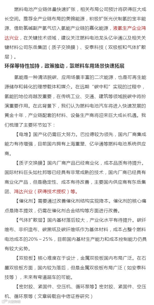 氢能系列之产业链梳理:核心环节国内企业正在培育